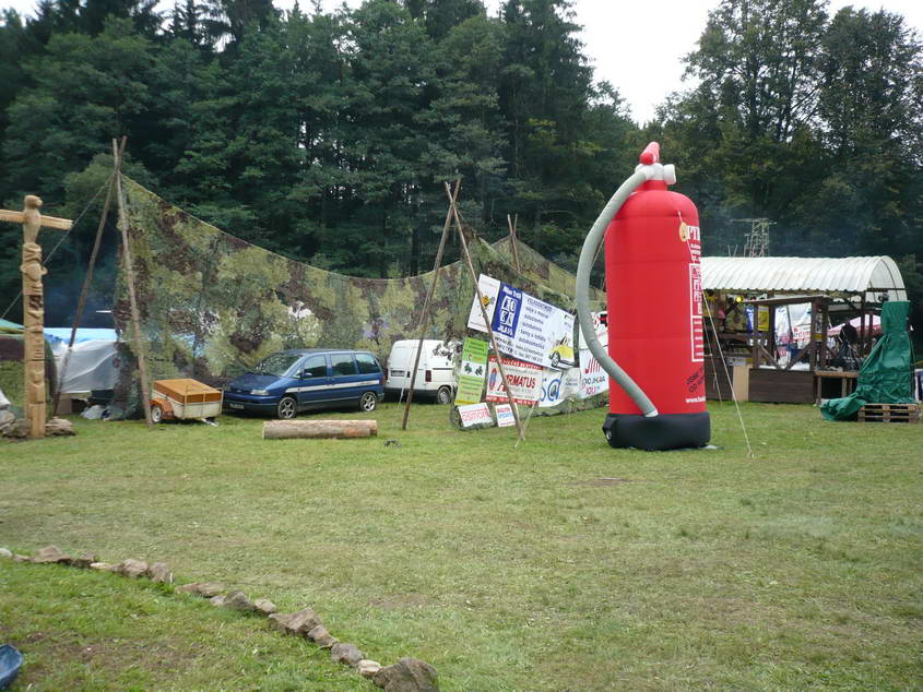 Totem, zákulisí a reklamní hasičák.