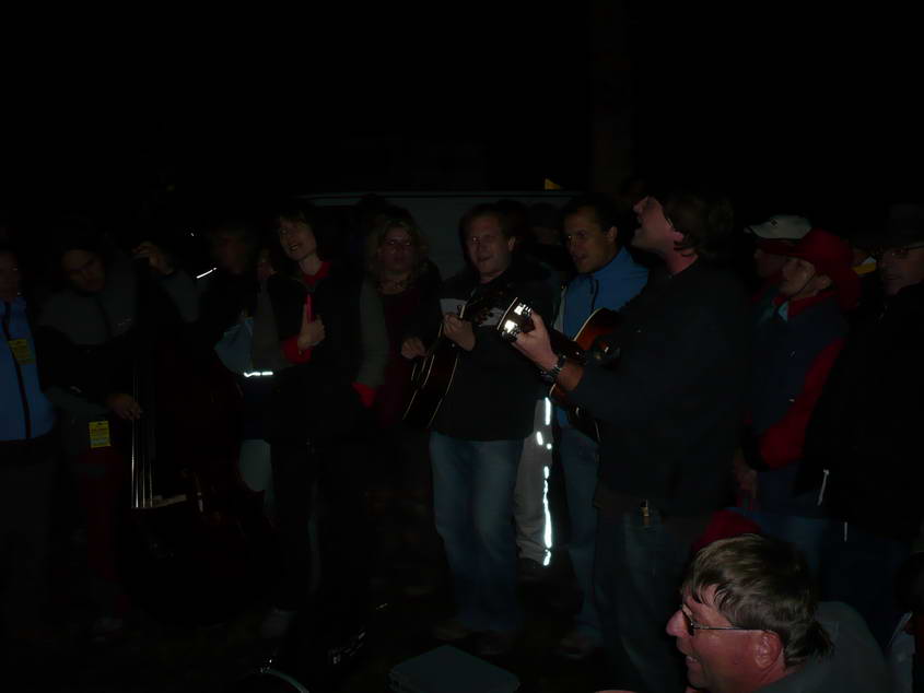Jak s postupem času vyhasínal oheň, bylo nutné přesunout se blíž, abychom nezmrzli. Při pokusu o pohyb jsem zjistil že nezvednu nohy. Jakpak by ne, když už jsem se několik hodin nepohnul z místa, jen poslouchal a zpíval. K mému potěšení se brzy krevní oběh v končetinách dolních opět rozproudil, ale stejně tak se rozproudily v hlavě myšlenky na spánek. Ještě pár písní a s úsměvem na tváři, písní na rtech, očima zářícíma od plamenů a propálenýma kalhotama odejít spát do kufru.