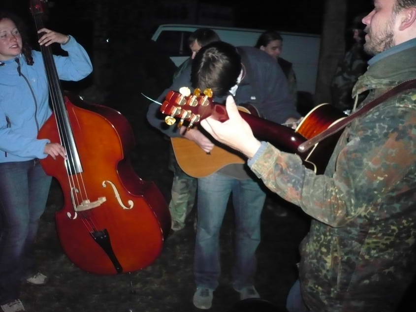 Svítání za rohem, táborák už nepálil, jen příjemně hřál a někam zmizela basistka. Aby nevznikli prostoje, na chvíli zaskočil Víťa. Zvládl to se ctí.