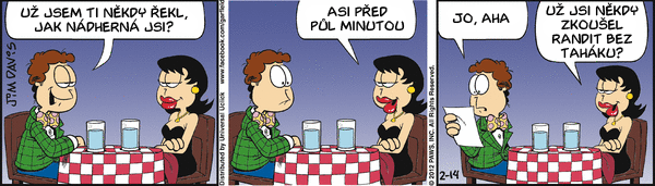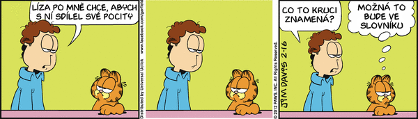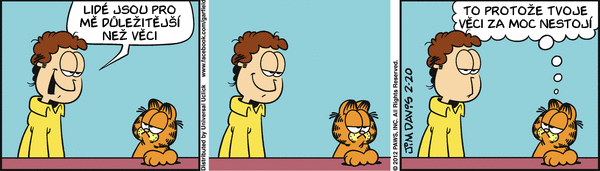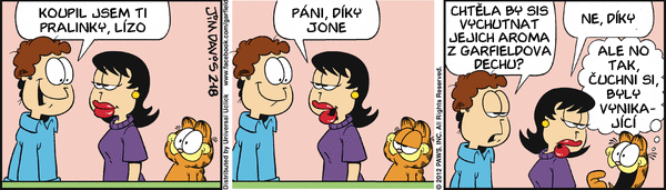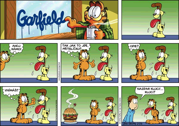 Jonovo umění flirtu. Pánové, také by se vám hodil slovník ženských slov? Jak by se vám líbilo dostat od milého jako dárek vůni a chuť pralinek v kočičím dechu? Sluší Odiemu a Garfieldovi oblečky? Garfield - mistr v krkání a rychlostním pojídání.